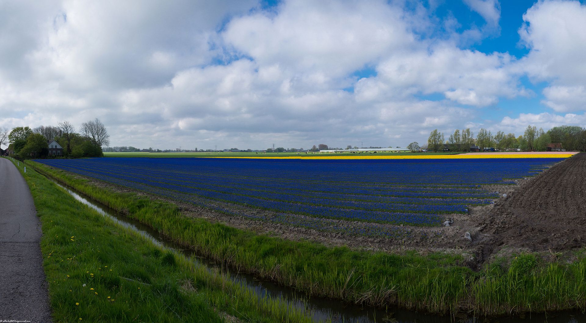 На следующий день по дороге из нашего домика возле Алкмара в музей Зёйдерзе первым нам попалось смешанное поле гиацинтов и желтых тюльпанов: