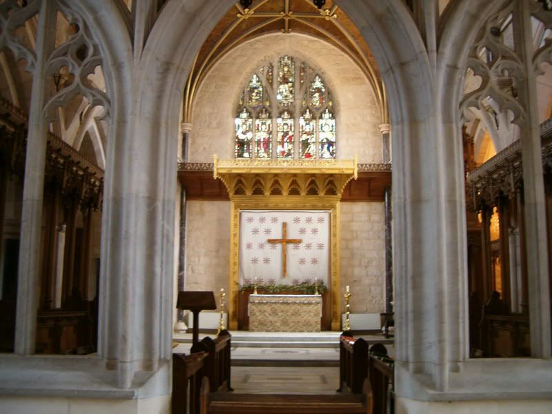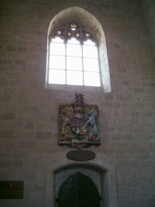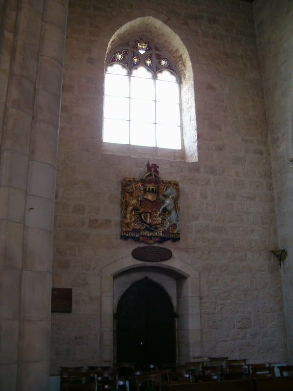 Хотя этот комплекс зданий, находящийся в Восточном Иерусалиме, хронологически не относится к первым английским строениям на Святой Земле, он, пожалуй, содержит первые и единственные строения, которые своей внешней архитектурой и духом, представляют именно английскую нацию и ее Церковь. Кафедральный собор был построен в 1910 году архитектором Джорджем Джефри и назван в честь святого Георгия, небесного покровителя Англии. Храм и прилегающие к нему строения (резиденция епископа, библиотека, гостиница и дом священников) выполнены в классическом английском готическом стиле, напоминающими английский парламент в миниатюре. В самом храме слева от входа установлен баптистерий – дар королевы Виктории. Центральный неф, выполненный в типично готическом стиле, поражает красотой своих витражей, сделанных из персидского стекла. В западной части установлен орган, построенный австрийской фирмой. Справа от входа находится небольшая капелла, посвященная архангелу Михаилу и всем ангелам.
