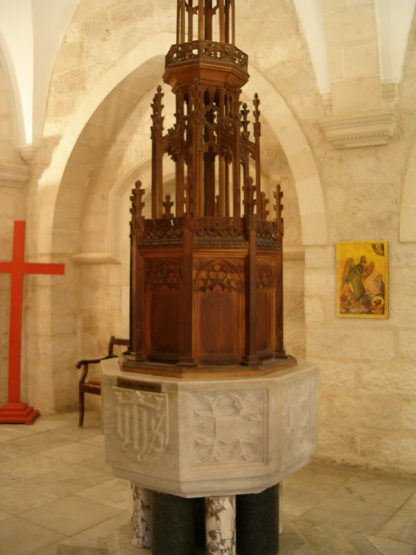 Выйдя из церкви, интересно осмотреть небольшой ботанический сад, в котором собраны растения, упомянутые в Танахе. Колокольня, выстроенная в 1912 году в типично английском стиле, напоминающая башню средневекового замка (почти точная копия Мадлен колледж в Оксфорде), названа в честь короля Эдуарда VII, пожертвовавшего деньги на ее строительство; он же построил англиканскую церковь в Назарете. На колокольне установлено три колокола.